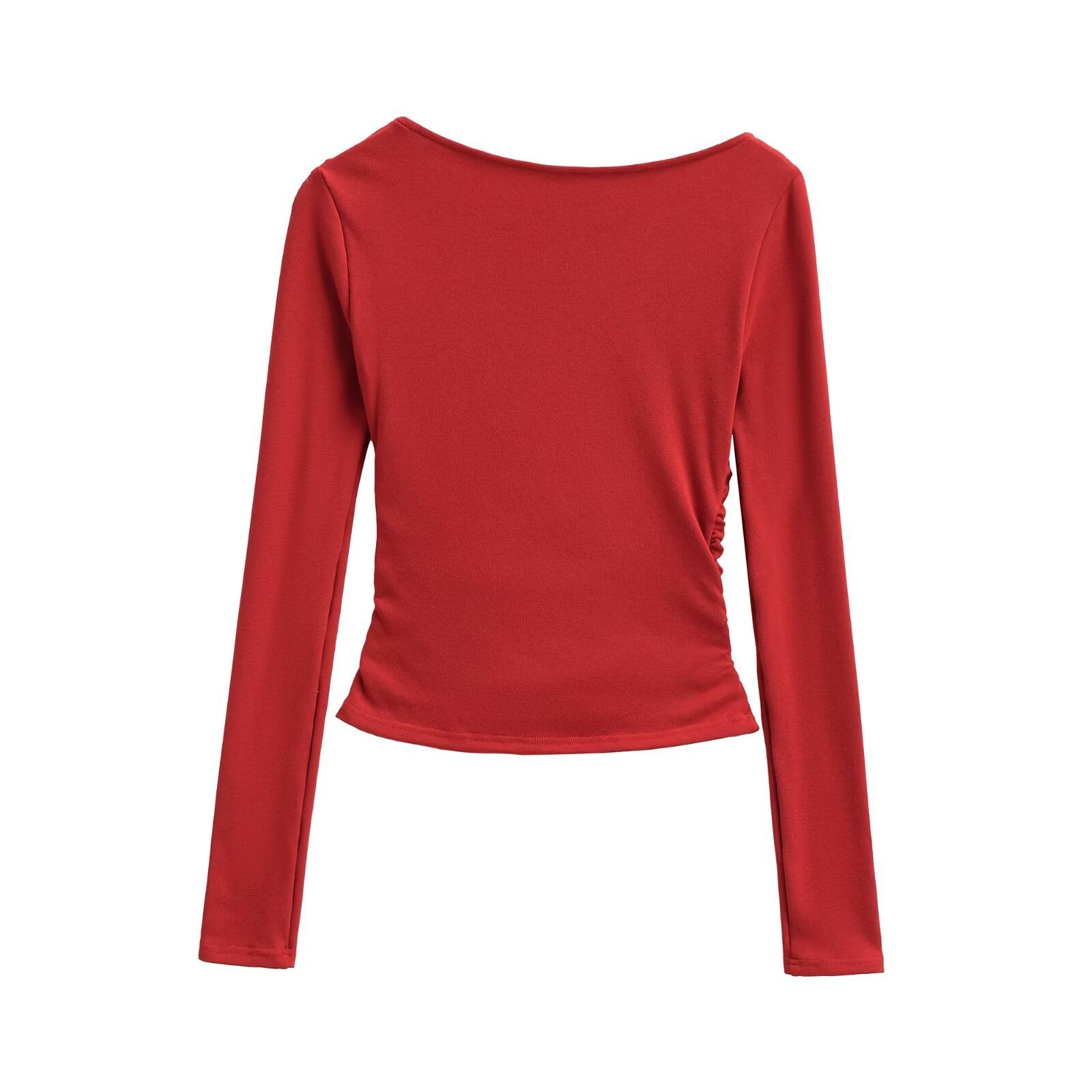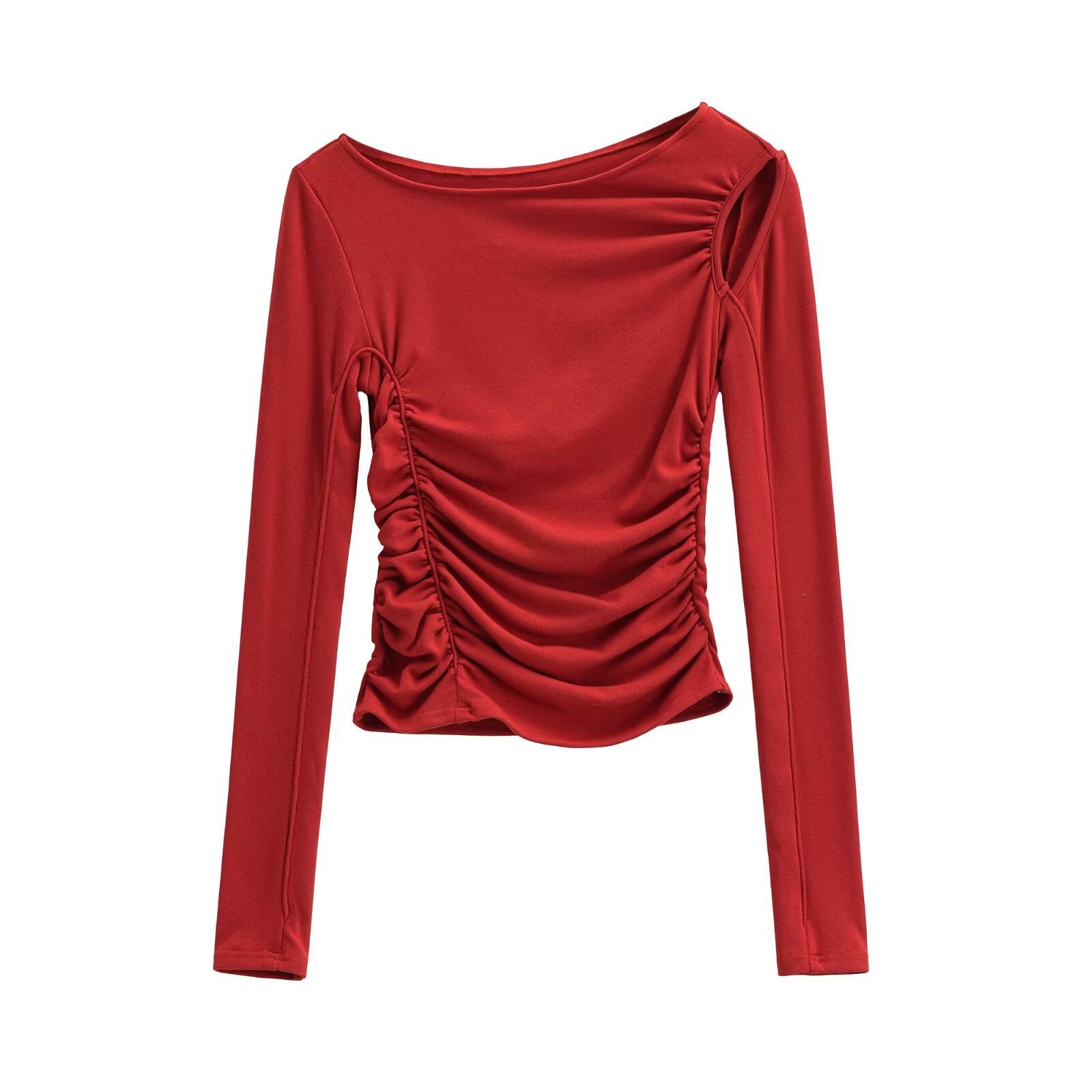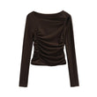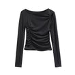 Pleated hollow slim fit long sleeved T-shirt