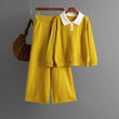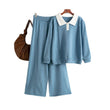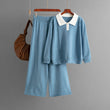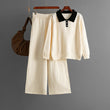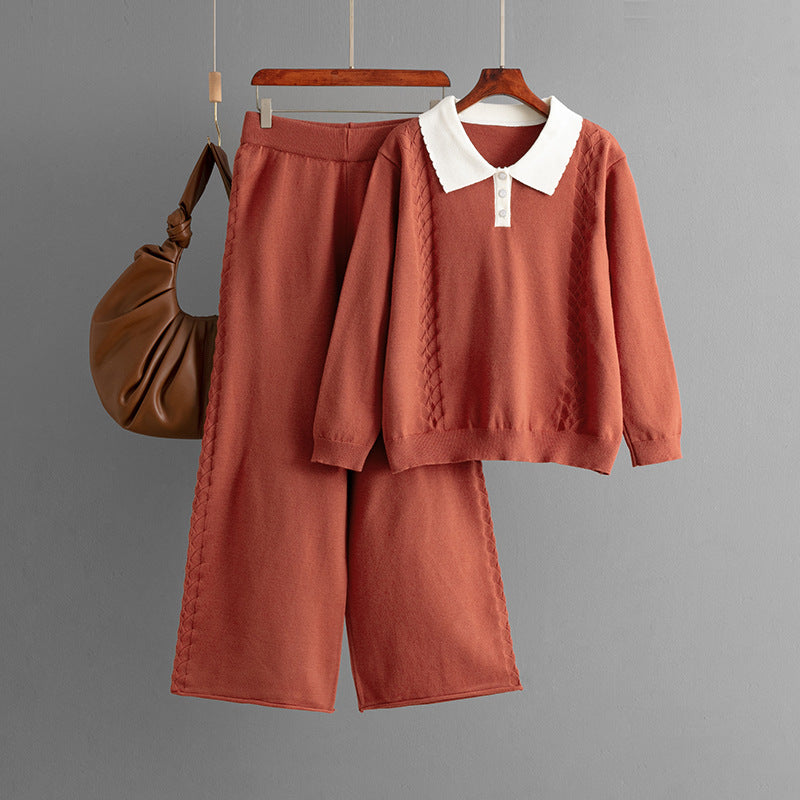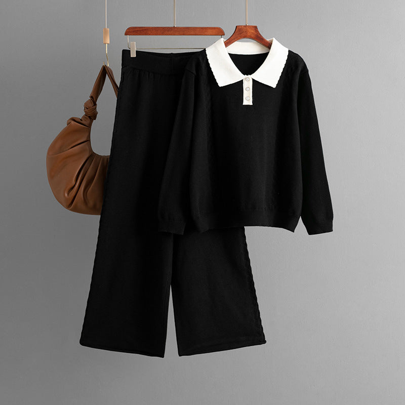 Polo collar color blocked loose sweater wide leg pants two-piece set