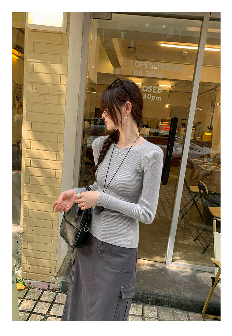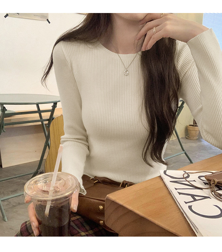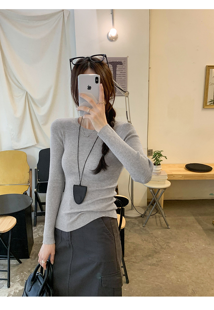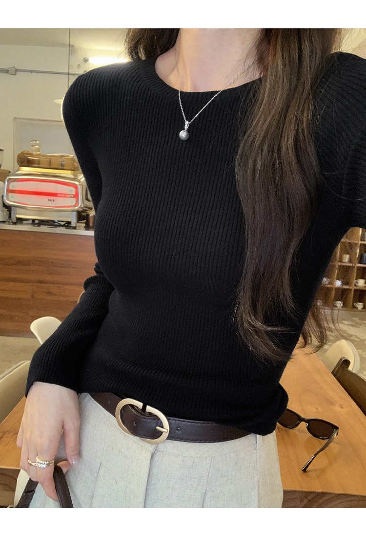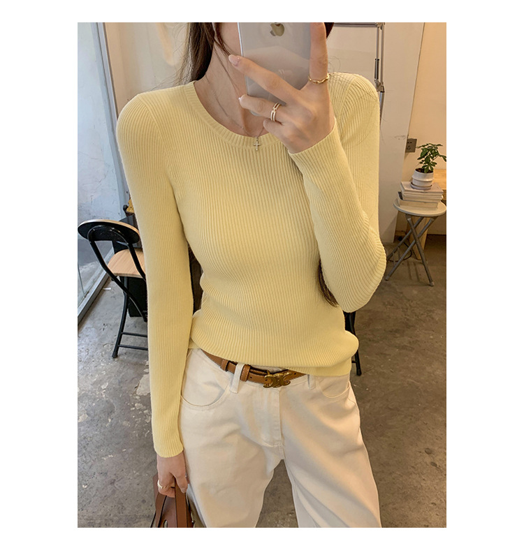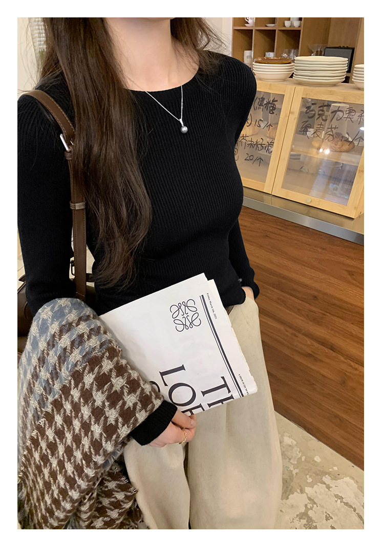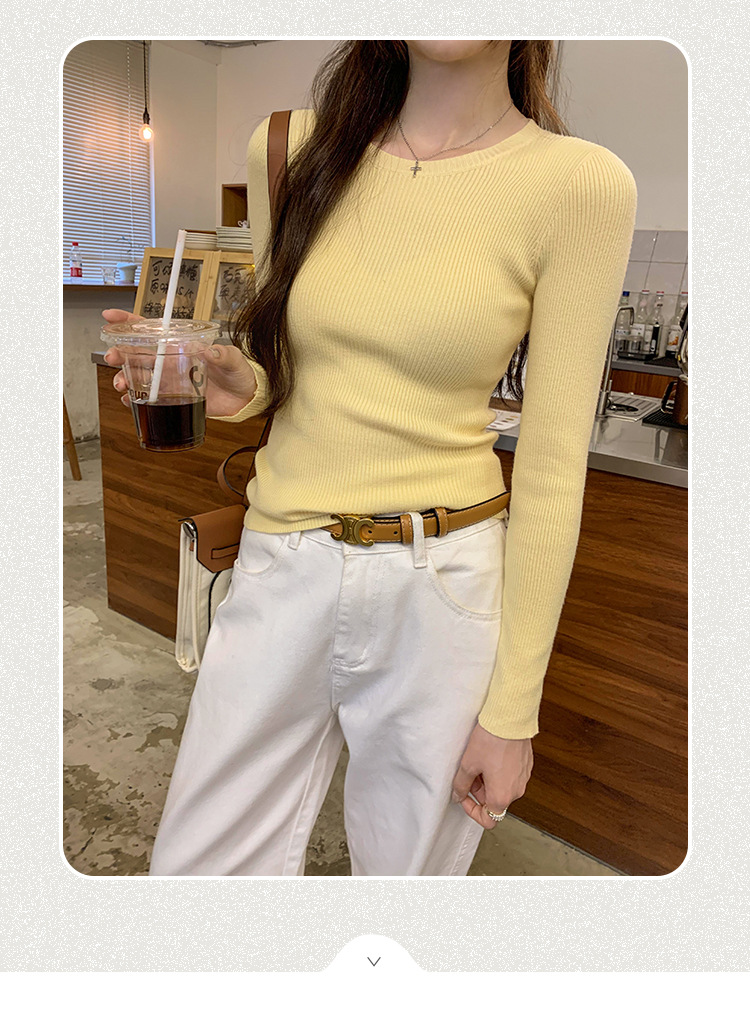 Regular Shoulder Round Neck Slim Fit Long Sleeve T-shirt for Women