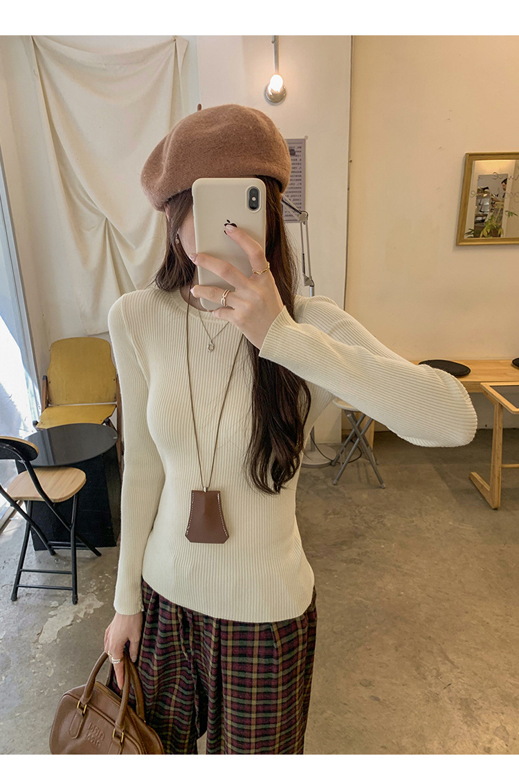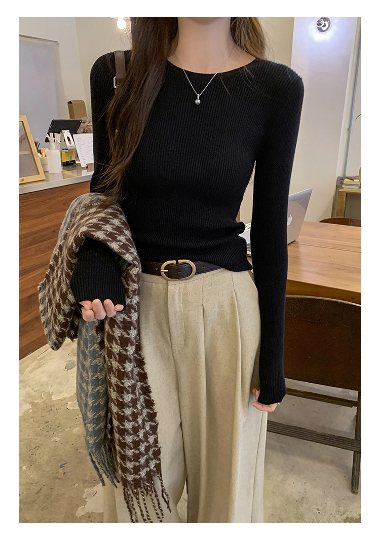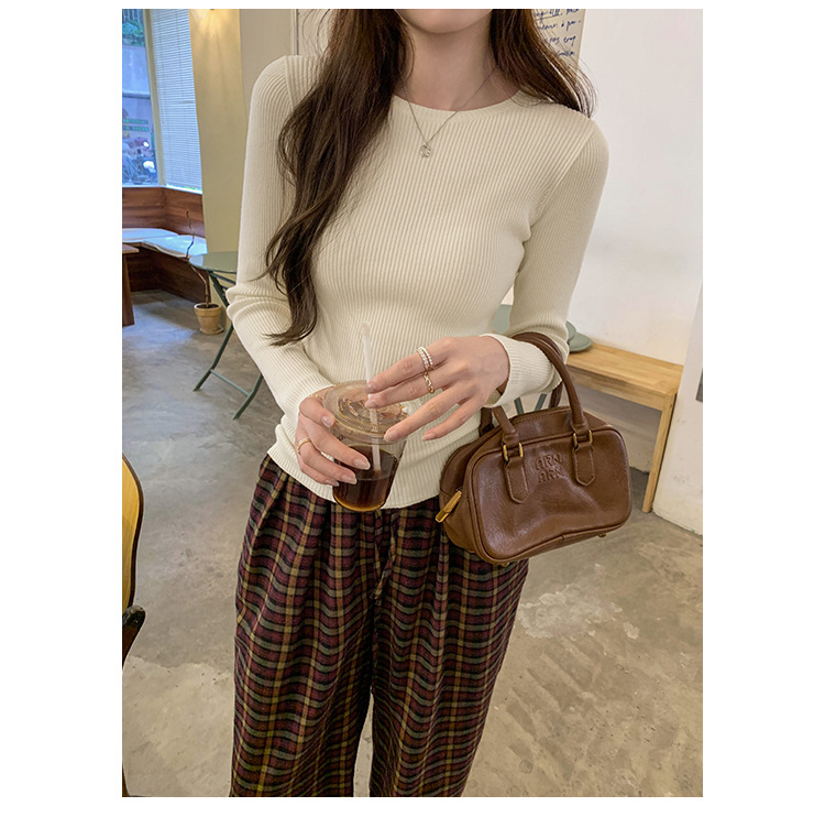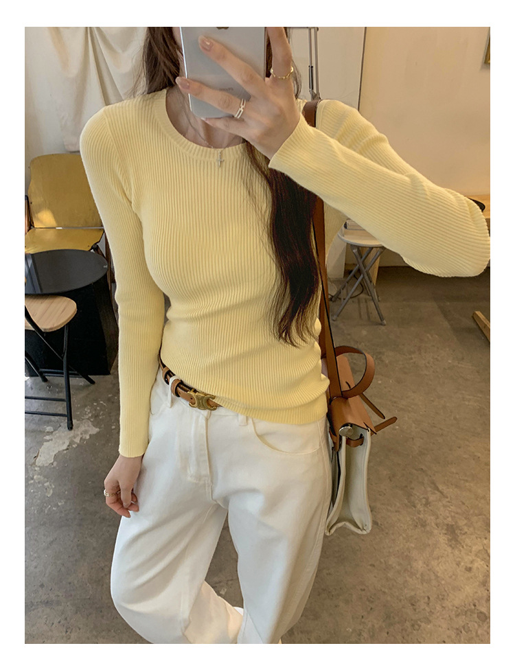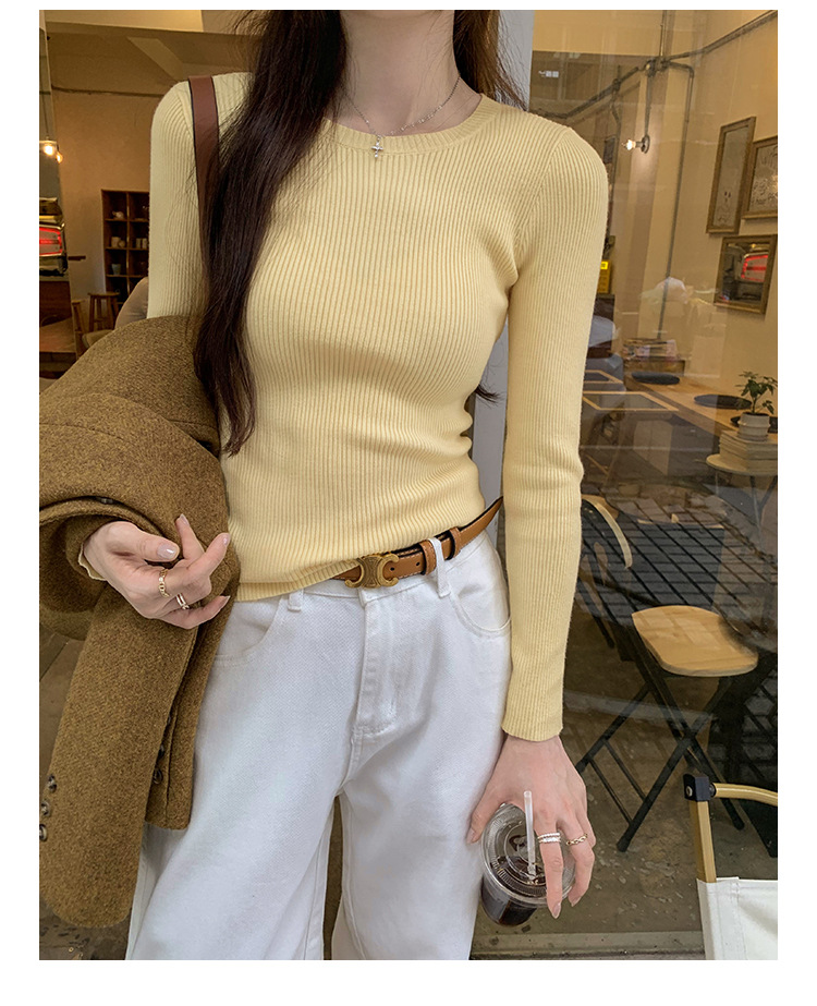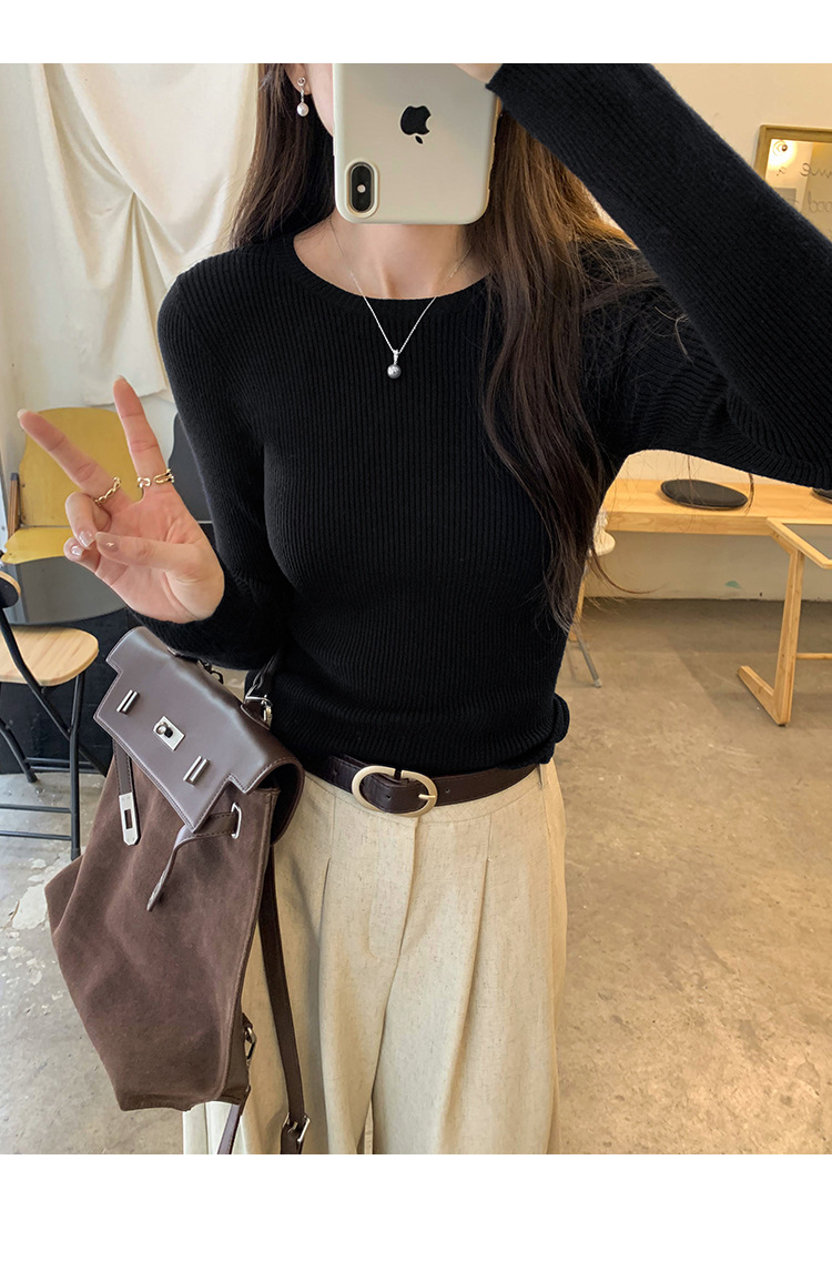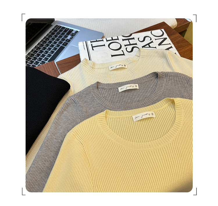 Regular Shoulder Round Neck Slim Fit Long Sleeve T-shirt for Women