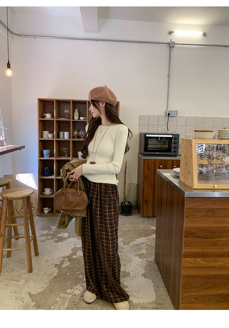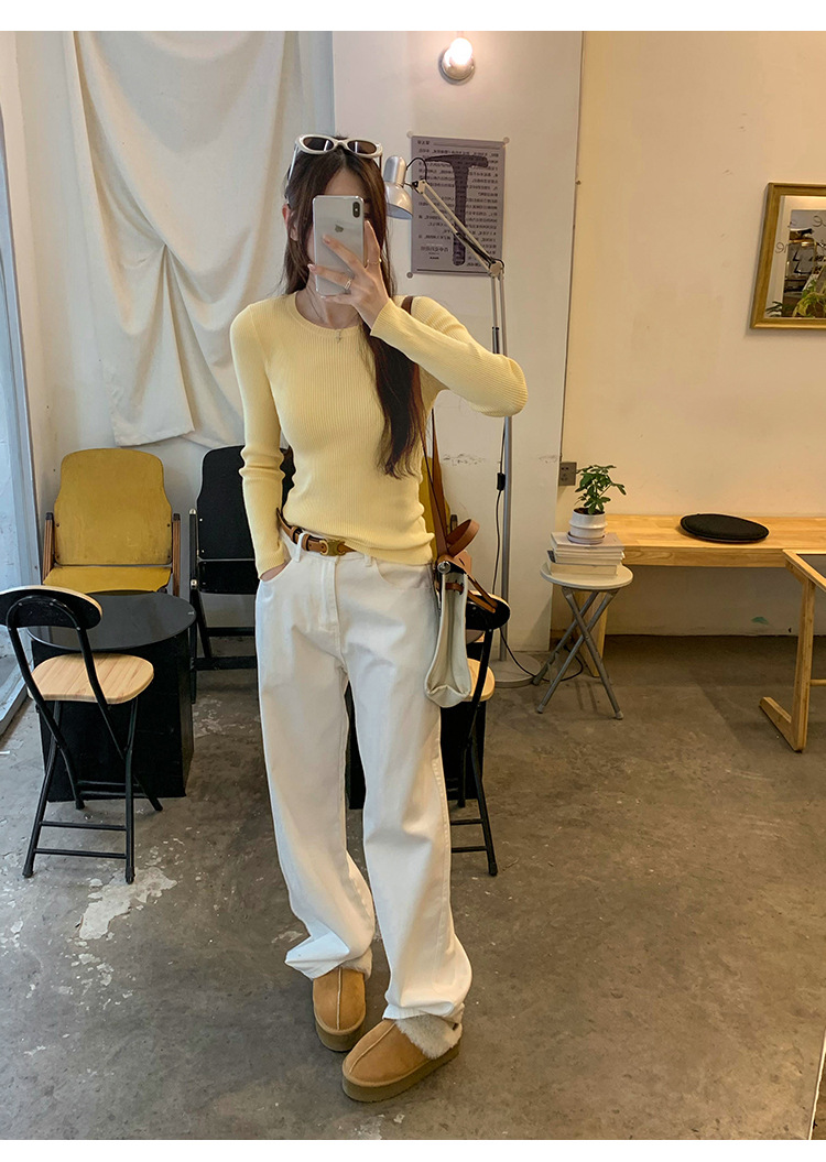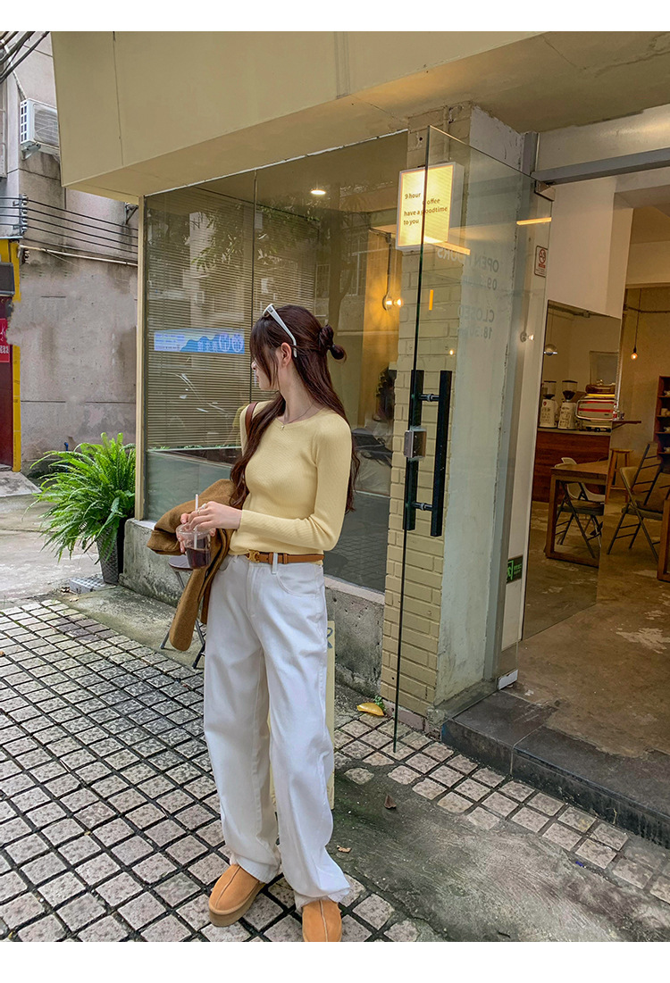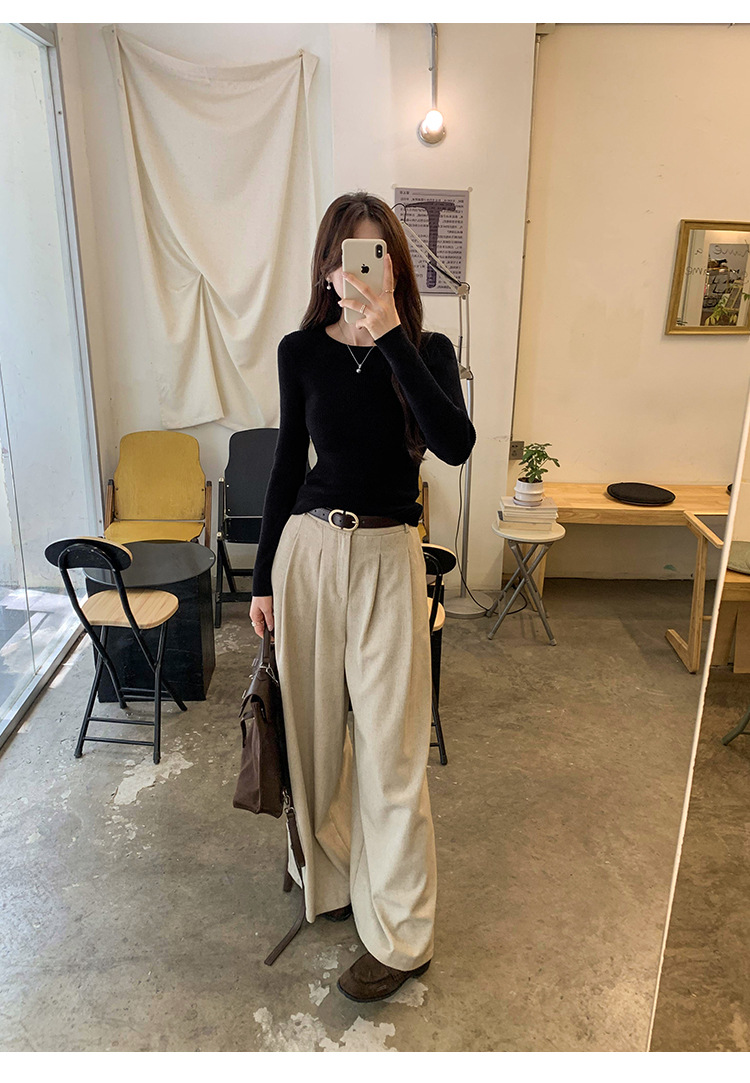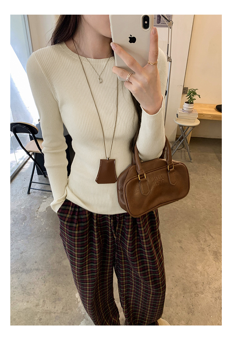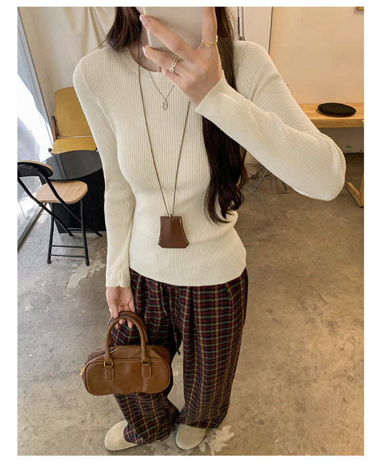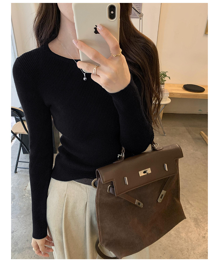 Regular Shoulder Round Neck Slim Fit Long Sleeve T-shirt for Women