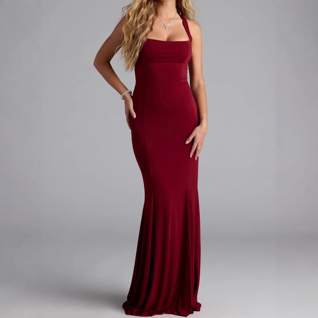 #backlessdresswomen, #waistcinchingdress, #longdresswomen, #elegantwomensdress, #squareneckdresswomen, #fitteddresswomen, #casualelegantdress, #luxurywomensdress, #modernwomensfashion, #sophisticateddresswomen