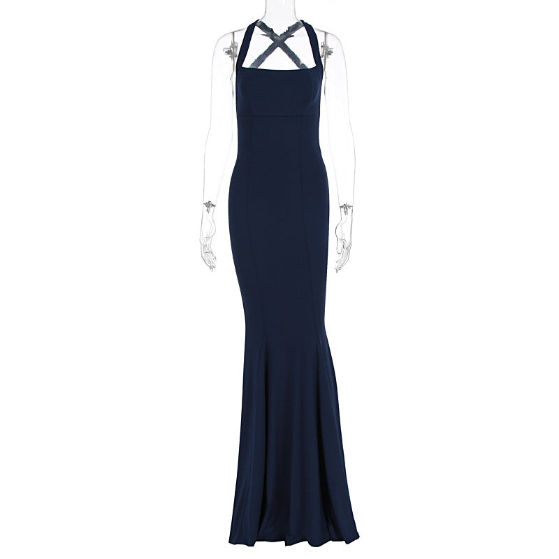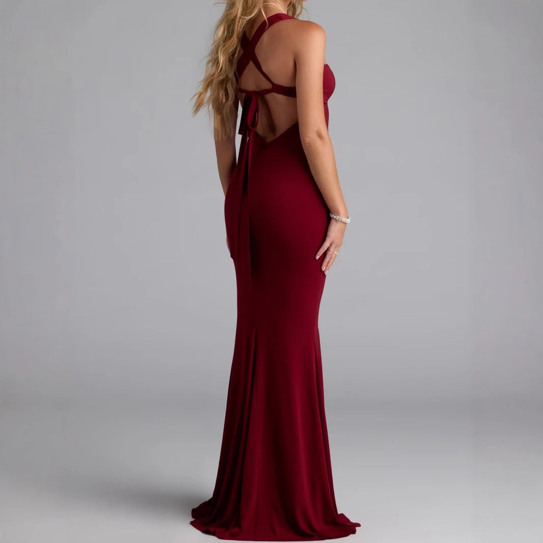 Tailored Backless Solid Color Waist Cinching Dress – The Women's Long Dress That Defines Elegance, Confidence, and Sophistication